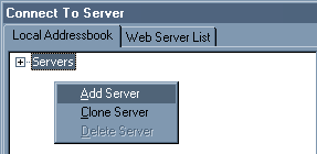 The Connect to server has another tab called “Web server list”. In this tab all the servers are listed that have their server designated as public servers. If you want to connect to one of those server just highlight the server of your choice by clicking on it and then click the “Connect” button below in the window. You can easily add this server to your local address book by highlighting the server and click on the “Copy to local Addressbook” button.