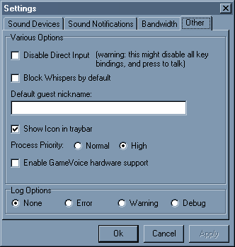 unchecked. If you are experiencing problems with TeamSpeak you can choose to