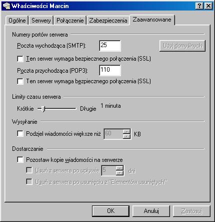 opis dla Outlook Express w wersji 5.x i 6.x (we wcześniejszych wersjach nie działa uwierzytelnienie przy wysyłaniu)