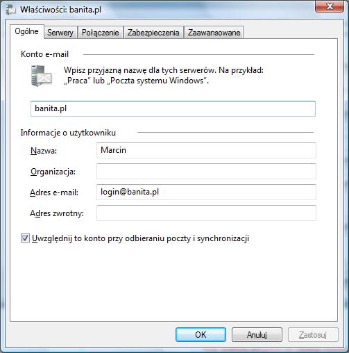 - "Adres e-mail" --> twoje konto pocztowe, czyli: ksywa@banita.pl