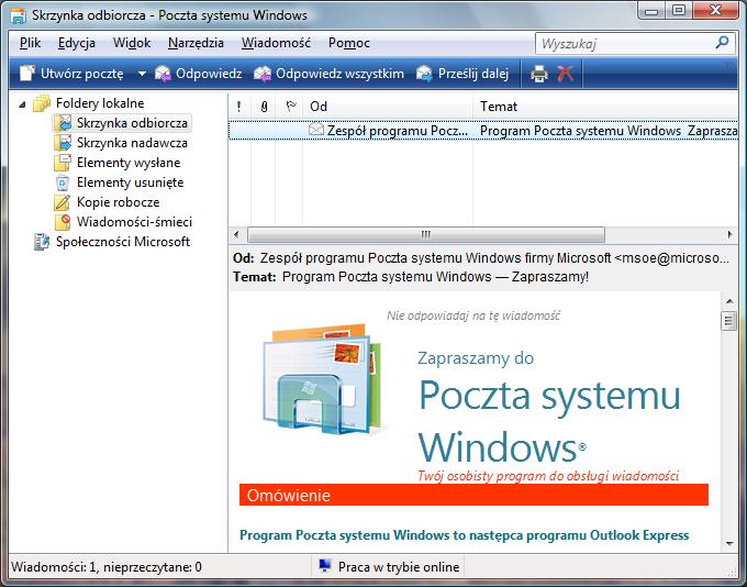 Widok ogólny Windows Mail (Poczta systemu Windows)