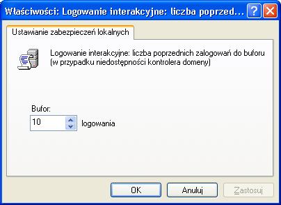 Niedostępność (kontrolera) domeny NT Czasem może się zdarzyć że podstawowy kontroler domeny NT, będzie niedostępny. w takich wypadkach jego role powinien przejąć zapasowy kontroler domeny ale takowego w naszej sieci po prostu nie ma. taka sytuacja może się też wydarzyć jak twój komputer będzie odłączony od sieci. W takiej sytuacji system nie będzie wstanie zweryfikować poprawności użytkownika i hasła w domenie i teoretycznie powinien odmówić "posłuszeństwa" czyli mimo wpisania prawidłowych danych odrzucić je z powodu niedostępności domeny NT. No ale oczywiście w Windows 2000/XP/2003 jest inaczej gdyż system buforuje standardowo do 10 poprzednich logowań użytkownika i w takiej sytuacji się jednak mimo wszystko zalogujesz. Opcje z tym związane znajdziesz w "Panel sterowania" >> "Narzędzia administracyjne" >> "Zasady zabezpieczeń lokalnych" >> "Zasady lokalne" >> "Opcje zabezpieczeń" >> "Logowanie interakcyjne: liczba poprzednich zalogowań do buforu (w przypadku niedostępności kontrolera domeny)". Możesz tutaj zmienić standardowe ustawienie buforowania 10 ostatnich logowań.