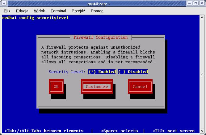narzędzia konfiguracji firewalla w dystrybucjach Linux Redhat oraz Fedora Core.