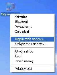 Mapowanie dysków sieciowych w Windows 2000/XP/2003 jest dostępnie z menu kontekstowego, po zainstalowaniu sieci Microsoft Networks. Żeby zmapować dysk sieciowy należy kliknąć prawym przyciskiem myszy na ikonę "Mój komputer" lub "Moje miejsce sieciowe" i wybrać opcje "Mapuj dysk sieciowy".