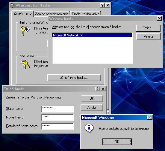 - W systemie Windows 95/98/Me możesz zmienić tylko hasło