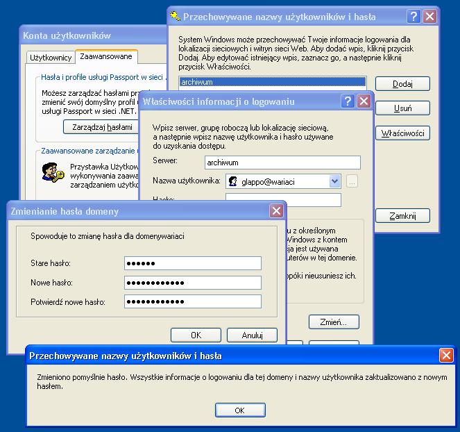 - Jak zauważyłeś w Windows XP/2003 możesz zmieniać hasła