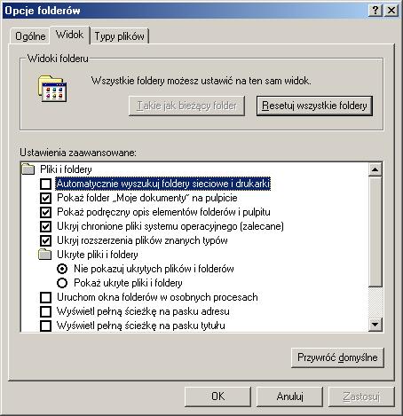 Problem z przeglądaniem grup roboczych w Windows Me W Windows Millenium występuję problem z niemożnością przeglądania sieci w Otoczeniu sieciowym lub poszczególnych grup roboczych jeśli jest zainstalowany więcej niż jeden protokół. Czyli dla przykładu masz zainstalowany w Windows Me protokoły TCP/IP, IPX/SPX i jeśli twój system nawet poprawnie będzie potrafił przeglądać sieć przy pomocy jednego z protokołów, a dla kolejnego mu ta sztuka nie wyjdzie to objawi może to objawić się błędem że dla żadnego protokołu nie będzie możliwe przeglądanie sieci. Owa wspomniana "moc" przeglądania sieci przy pomocy danego protokołu wiąże się oczywiście z reguły z poprawna komunikacją z dana główną przeglądarką grupy roboczej dla danego protokołu. Rozwiązanie problemu sprowadza się do aktualizacji pliku Vredir.vxd dla Windows Millenium. O tym problemie możesz poczytać w bazie wiedzy Microsoftu w artykule 284084 Brak grup roboczych w Otoczeniu sieciowym po zainstalowaniu wielu protokołów w systemie Windows Me. Problem z dostaniem się na Windows 2003 Problem ten objawia się nie możnością dostania się do udostępnień zlokalizowanych na Windows 2003 (czasem też Windows NT/2000/XP), mimo prawidłowo ustawionych wszelkich praw dostępu. Wtedy prawdopodobnie Windows 2003 ma ustawione akceptowanie autentyfikacji NTLM. Natomiast standardowo Windows 95/98/Me nie obsługują NTLM, tylko LM. Rozwiązaniem jest albo uaktualnienie Directory Services Client na Windows 95/98/Me lub włączenie akceptowania w Windows 2003 również LM (kosztem zmniejszenia bezpieczeństwa autentyfikacji). Dodatkowo Windows 95 nie koduje standardowo haseł, co też należy zmienić w takich wypadkach. Żeby dowiedzieć się jak wykonać te czynności przeczytaj Dodatkowy opis tyczący haseł SMB (kodowanie). Brak widoczności udostępnień na Windows 2000/XP/2003 i Samba/Unix Problem objawia się gdy po wejściu z Windows 95/98/Me w Otoczeniu sieciowym na Windows 2000/XP/2003 lub Samba/Unix nie widzisz udostępnionych folderów lub/i drukarek które na pewno są udostępnione i widoczne z komputerów z systemem np. Windows 2000/XP/2003. Prawdopodobne owe udostępnione foldery lub/i drukarki na Windows 2000/XP/2003 lub Samba/Unix posiadają nazwę udziału czyli udostępnienia (nie mylić np. z nazwą folderu) dłuższą niż 12 znaków. Całe zamieszanie wynika z tego że w Windows 95/98/Me jest używana NetBIOS które to pozwala żeby udostępniony zasób (czyli katalog lub drukarka) posiadał nazwę nie dłuższą niż 12 znaków. Natomiast choćby w Windows 2000/XP/2003 gdzie całość oparta jest o CIFS (upraszczając jest to nowsza wersja NetBIOS) nazwy udziałów mogą być dłuższe. Rozwiązaniem problemu jest banalne czyli nie używać w mieszanych sieciach nazw udziałów choćby na Windows 2000/XP/2003 lub Samba/Unix dłuższych niż 12 znaków żeby komputery z Windows 95/98/Me mogły je bez problemu dostrzec. Automatycznie wyszukuj foldery sieciowe i drukarki w Windows Me W Windows Millennium w folderze "Moje miejsce sieciowe" po pewnym czasie pojawiają się skróty do folderów w naszej sieci. Możesz to wyłączyć odznaczając funkcje "Automatycznie wyszukuj foldery sieciowe i drukarki" poprzez "Panel sterowania" >> "Opcje Folderów" zakładka "Widok".