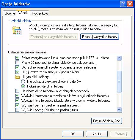 W Windows XP Professional przejdź do "Panel Sterowania" >> Opcje Folderów" i wybierz zakładkę "Widok"