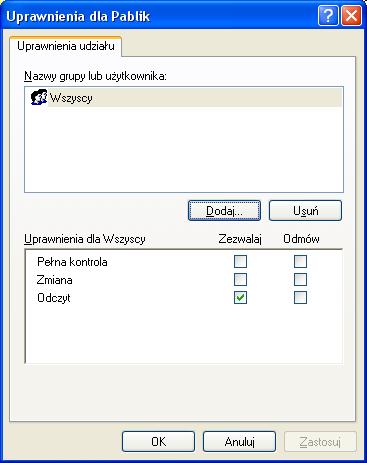- Zaznaczenie tej opcji włącza pełen dostęp do udostępnionego zasobu. Domyślnie w Windows XP bez zainstalowanego
