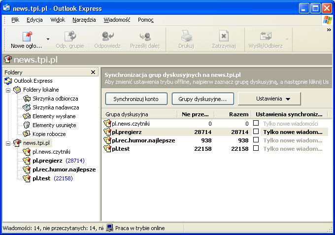 Widok ogólny Outlook Express macoswindows
