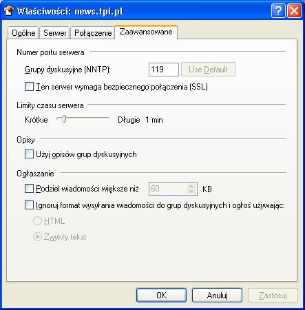 - "Serwer grup dyskusyjnych (NNTP)" --> wpisz